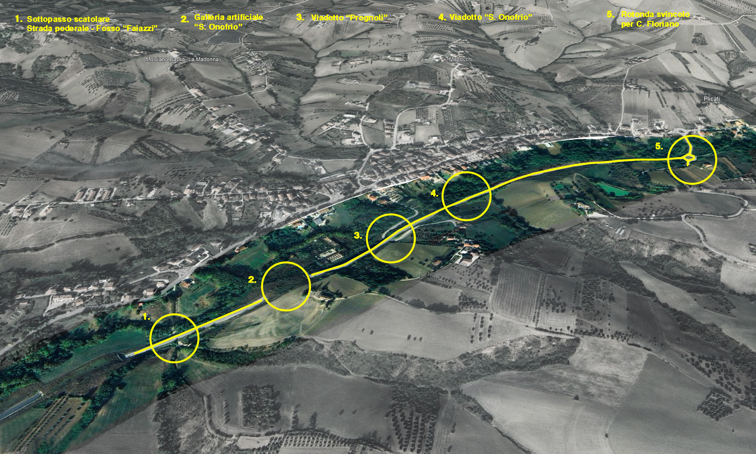 Tra le opere realizzate figurano il viadotto “Villa Ricci” e la galleria “Garrufo” (198,80 m), oltre a sovrappassi e rotatorie che supportano la continuità della viabilità locale e poderale. Un intervento significativo ha riguardato il ponte sul torrente Salinello, ampliato con l’aggiunta di 50 cm per lato.